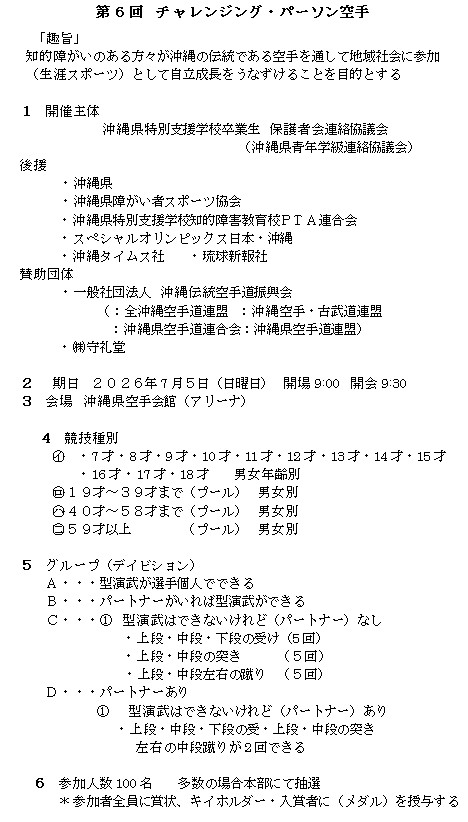 『第六回チャレンジング・パーソン空手』が開催されます。